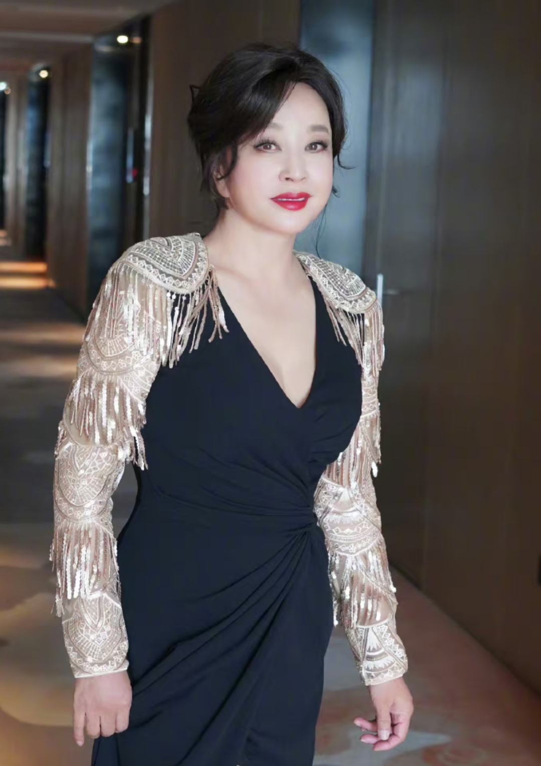刘晓庆一把年纪了跟着年轻人凑热闹,穿上礼服参加活动精气神十足.
