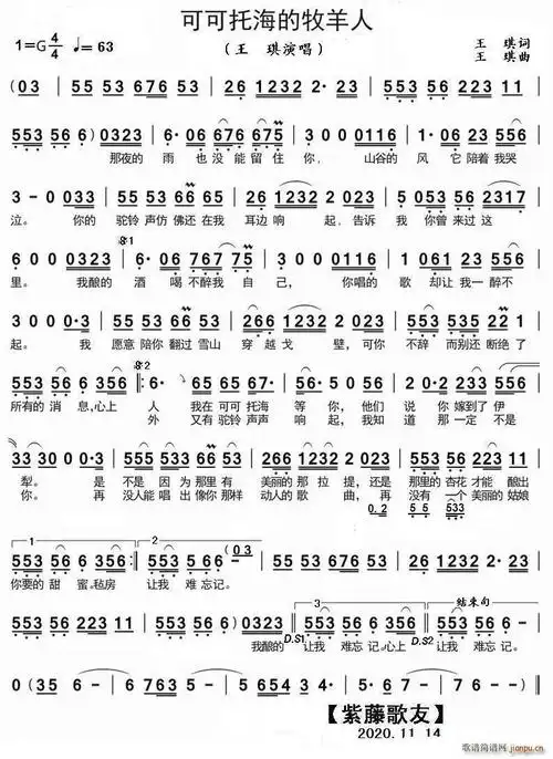可可托海的牧羊人王琪词曲小弩个人制谱园地