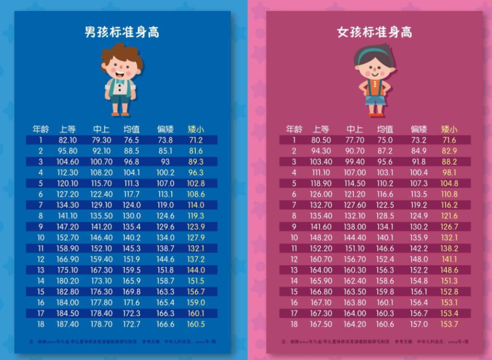 最新儿童身高参照表,男孩女孩全都有,看看你家娃身高合格没?