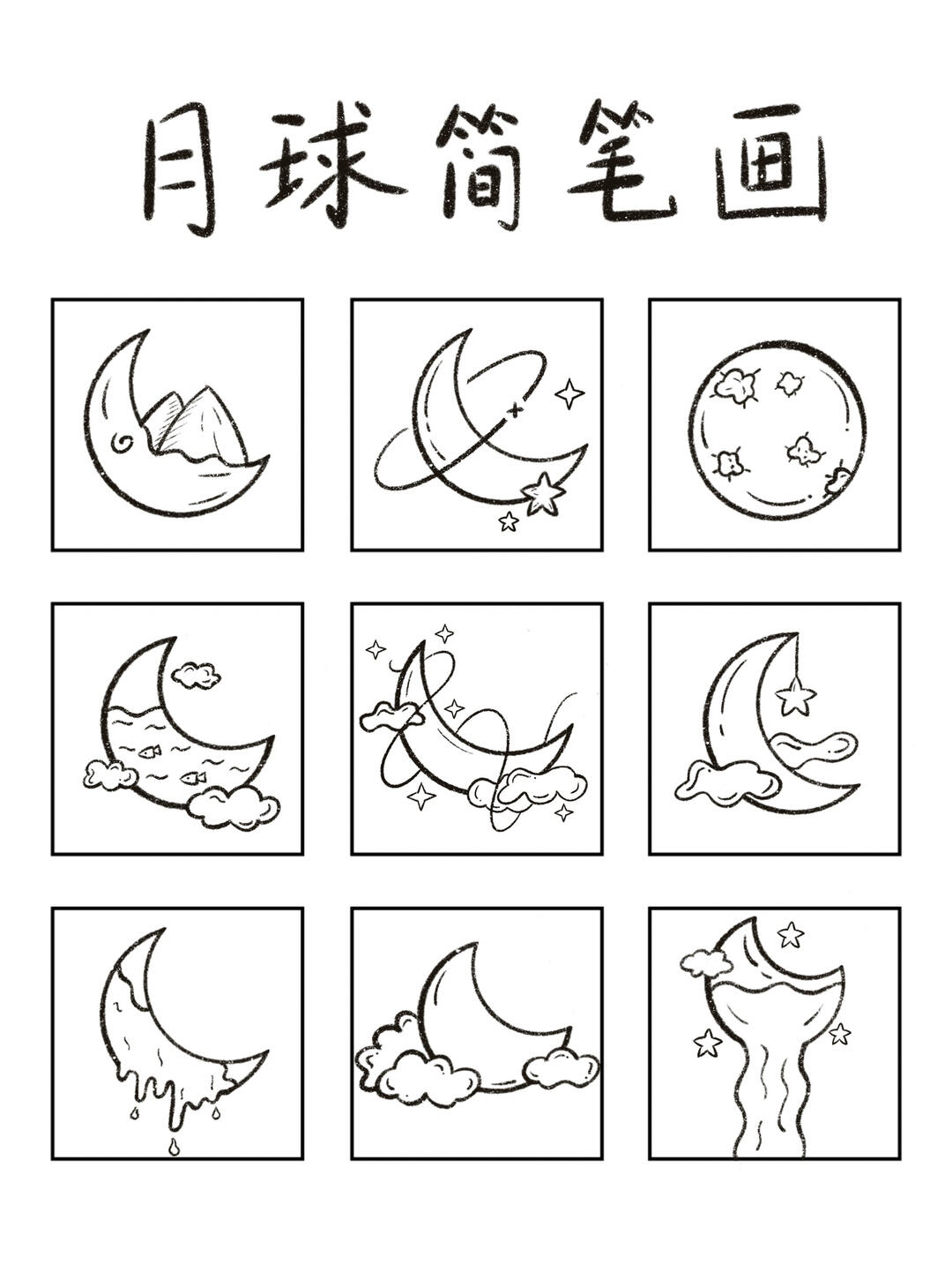 控笔练习打卡素材day34-月球黑白简笔画