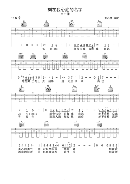 卢广仲刻在我心底的名字吉他谱