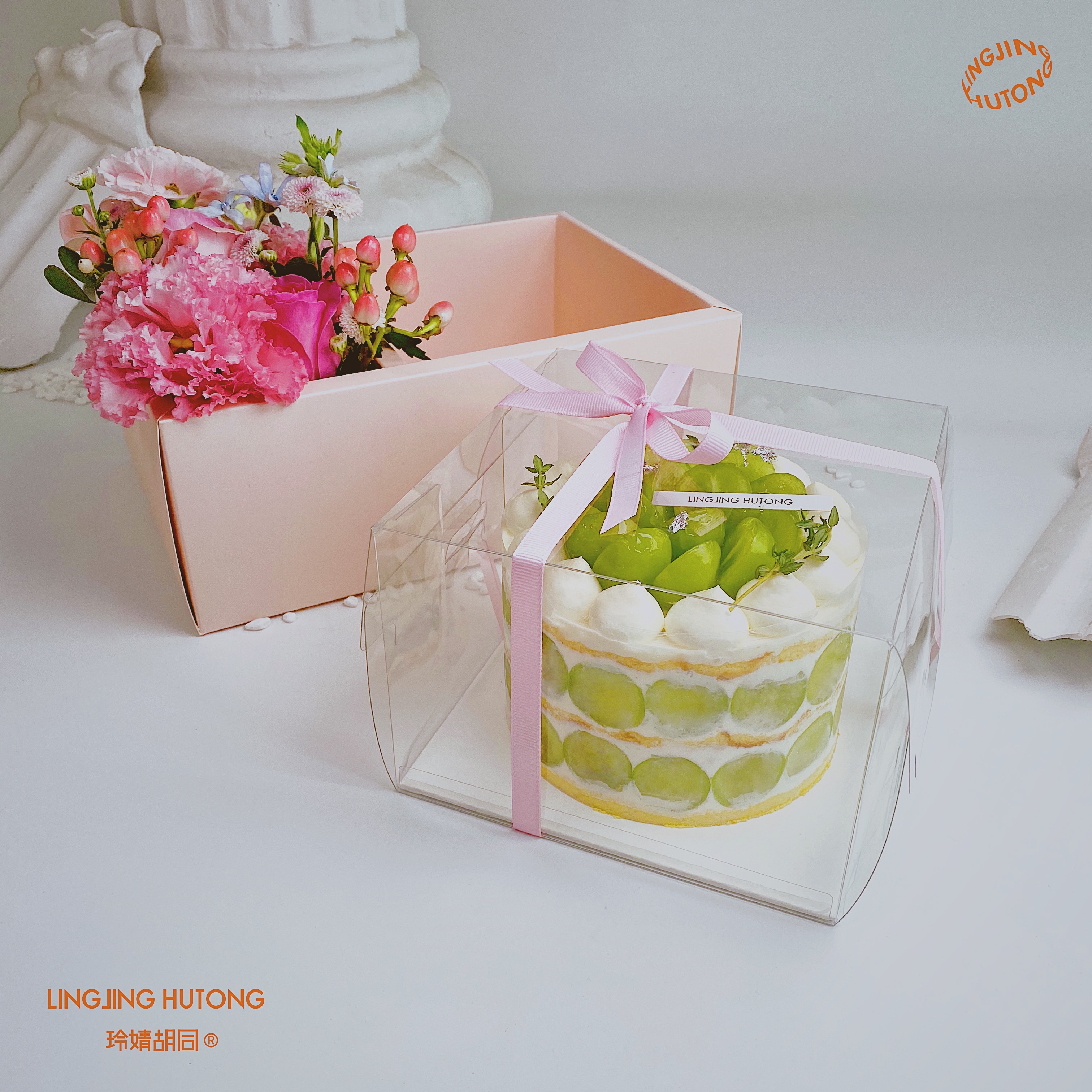网红情人节鲜花蛋糕一体盒4寸手提透明盒节日蛋糕盒烘焙包装礼盒