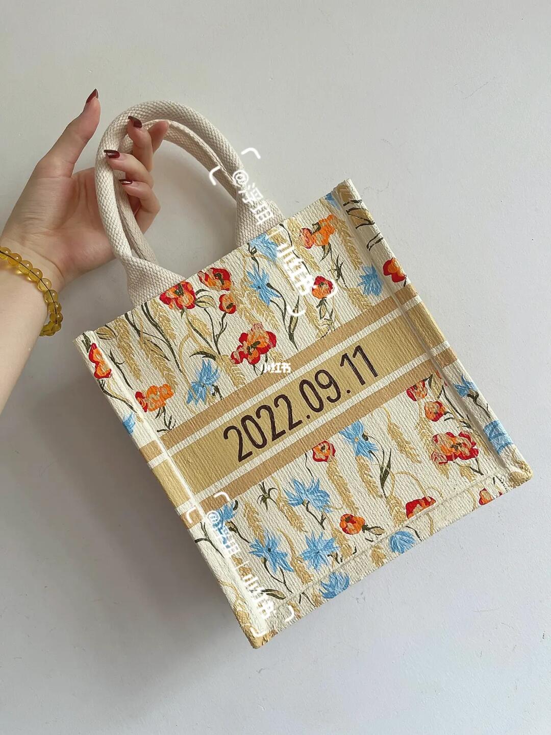 手绘包花朵包包muji麻布包改造