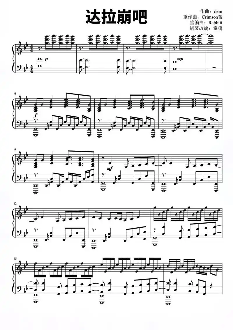 达拉崩吧.#钢琴 #钢琴谱#达拉崩吧 - 抖音