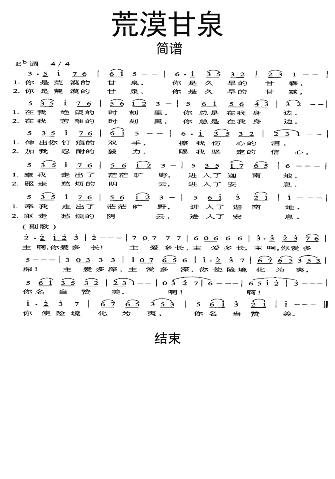 荒漠甘泉歌曲简谱