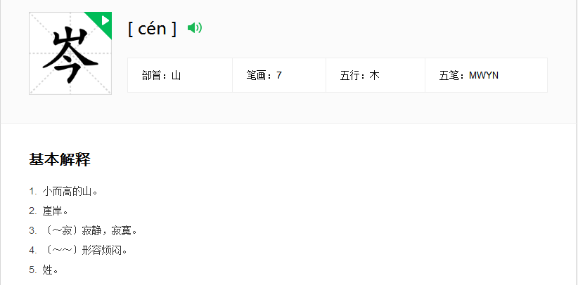 岑这个字怎么读,而且是什么意思,说明白点