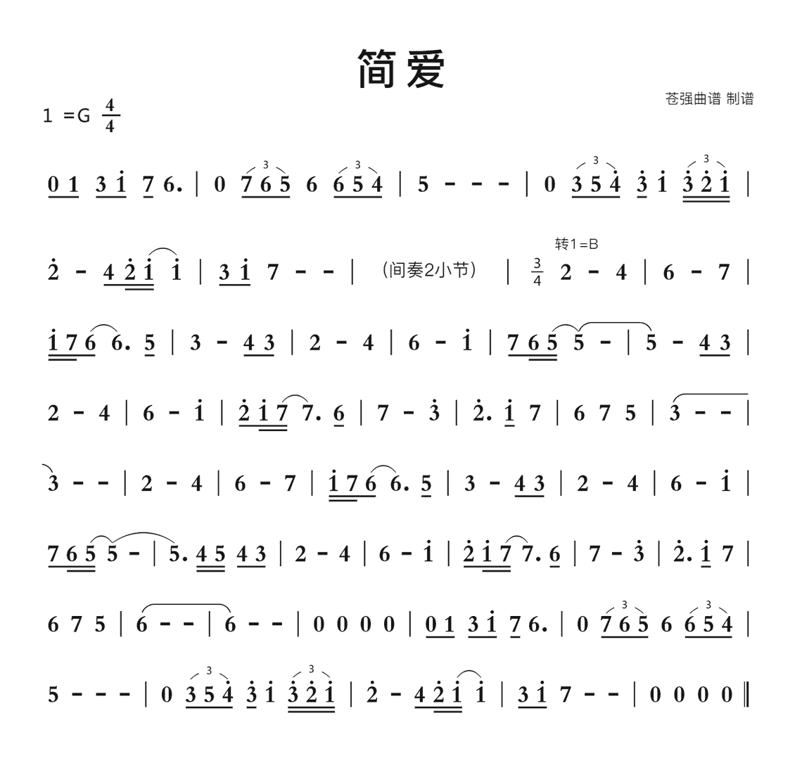 简爱简谱