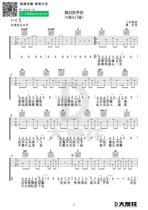 我只在乎你c调六线吉他谱-虫虫吉他谱免费下载