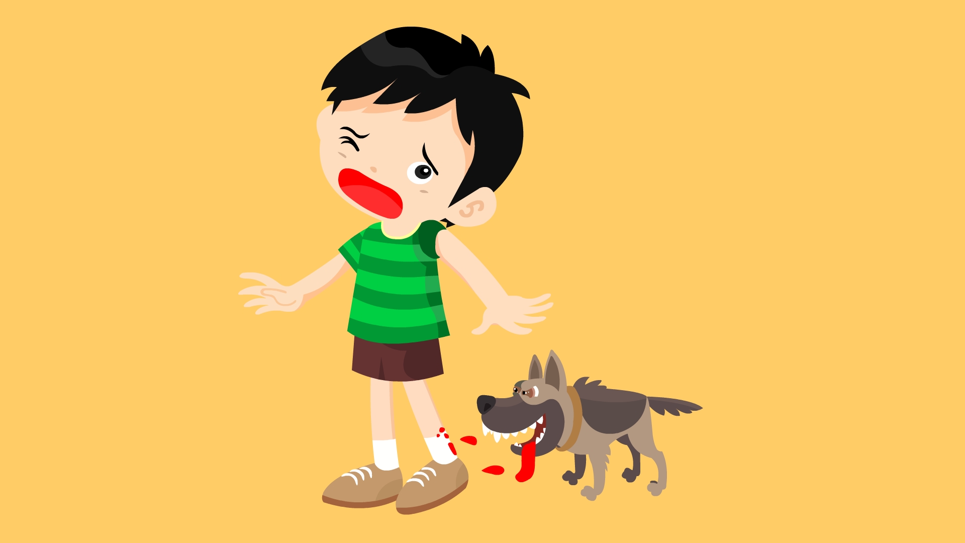 卡通世界狂犬病日正在被狗咬的人手绘元素