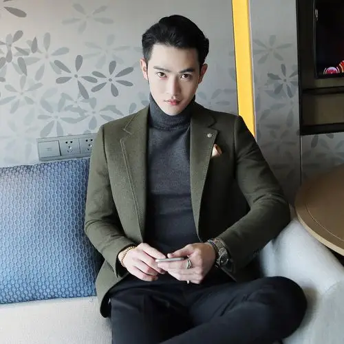 男士加绒加厚小西装韩版修身冬季休闲帅气西服外套男装上衣帅气潮