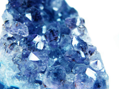 宏观蓝色电气石矿物在白色的背景