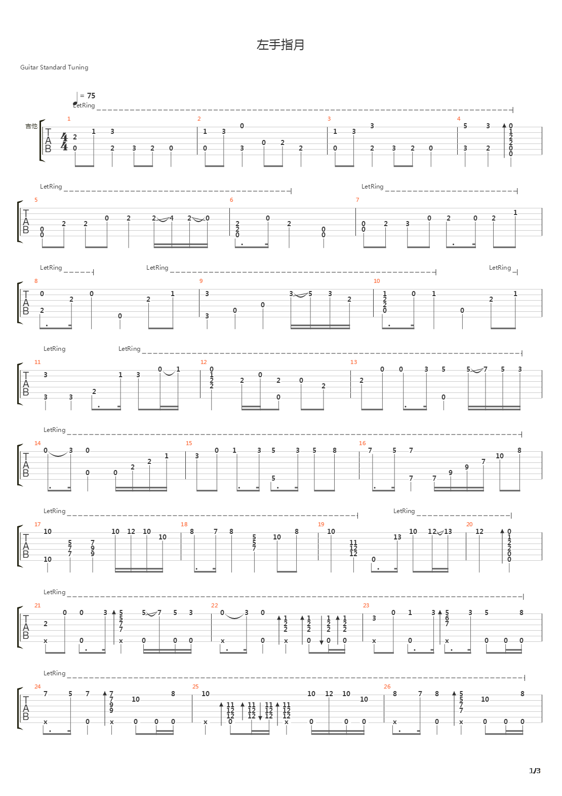 左手指月(指弹谱)吉他谱(图片谱,独奏,吉他谱,指弹)_萨顶顶(周鹏)