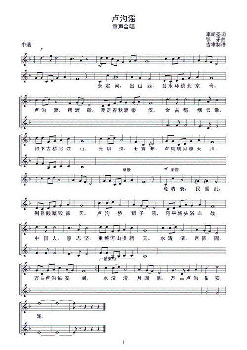 卢沟谣钢琴谱李明圣唱响中国获奖歌曲