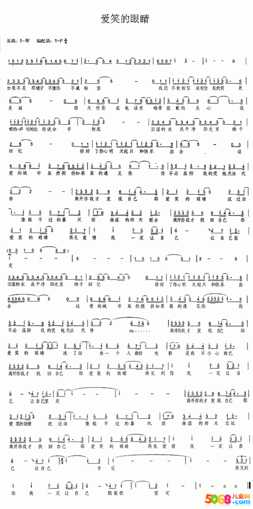 爱笑的眼睛简谱,歌词_我爱歌谱网