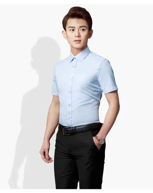 裤态度白衬衫男短袖夏季薄款商务正装男士白色修身半袖衬衣青年职业工