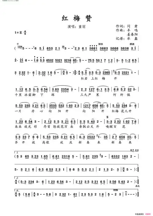红梅赞(清晰版)_简谱_用户传谱 | 搜谱——打造全国最大的歌谱搜索