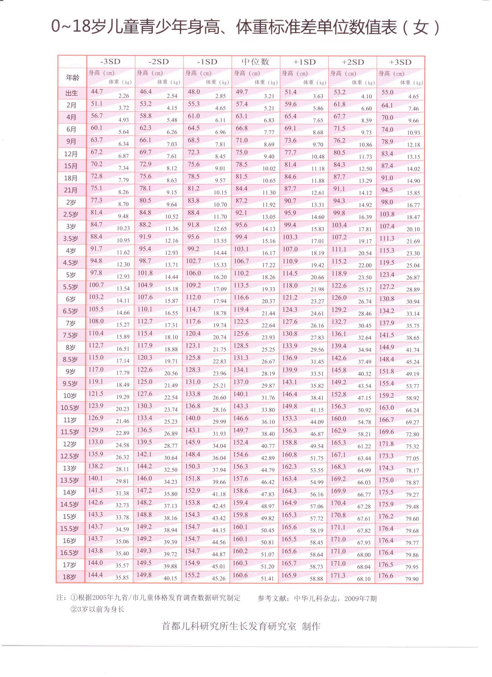 0—18岁女孩身高,体重标准差单位数值表(女) - 好大夫在线