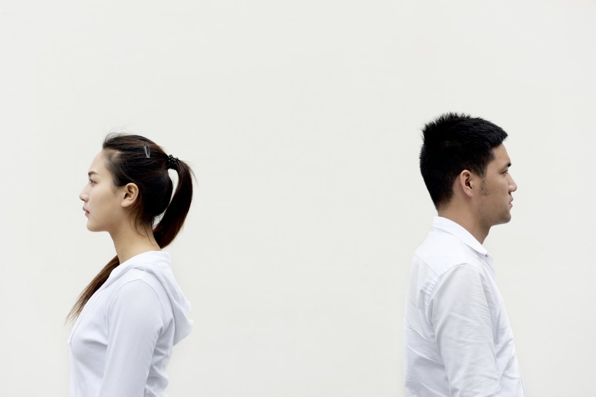 悲伤情侣背对背站好照片