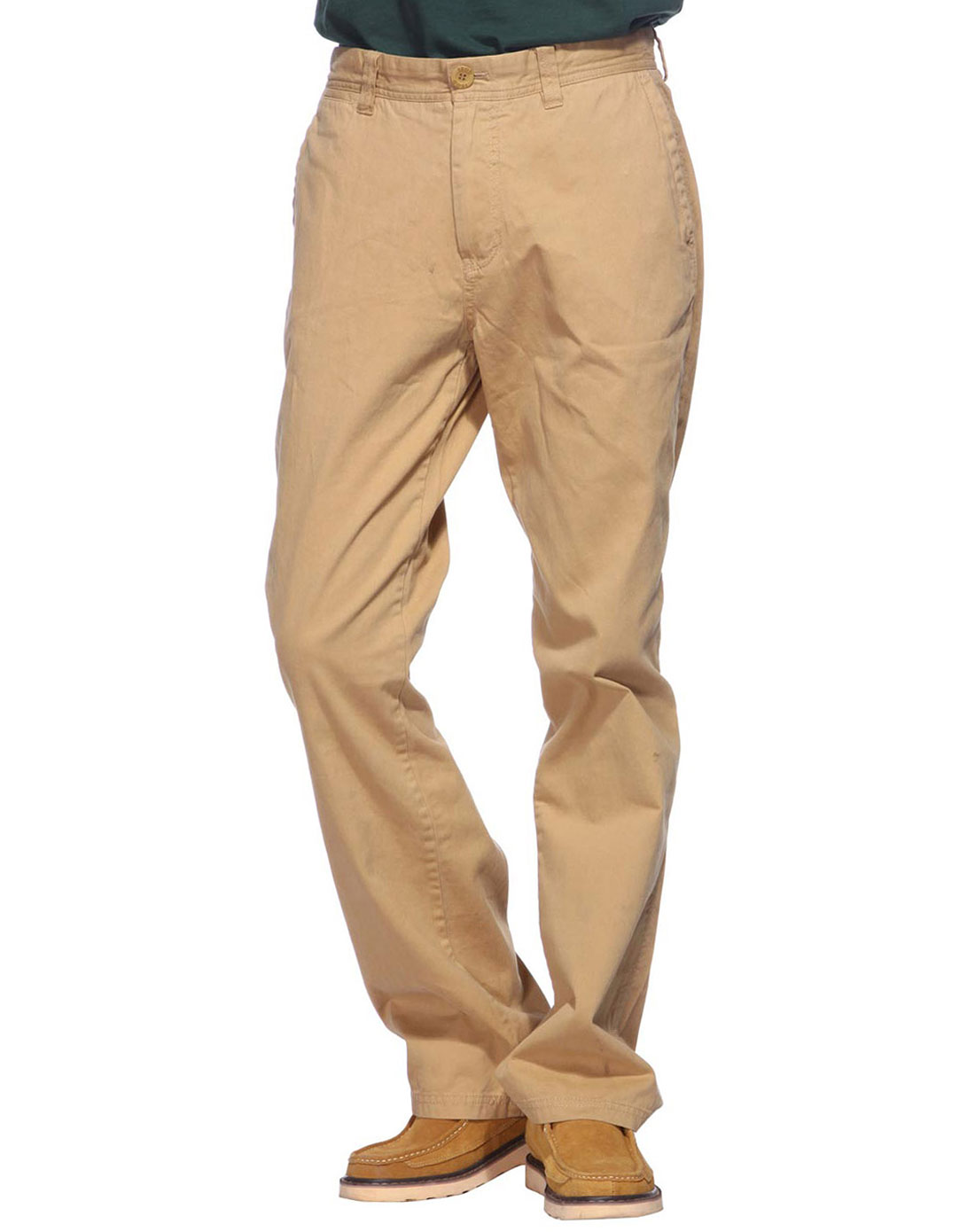 深卡其色纯棉微弹夏季休闲裤