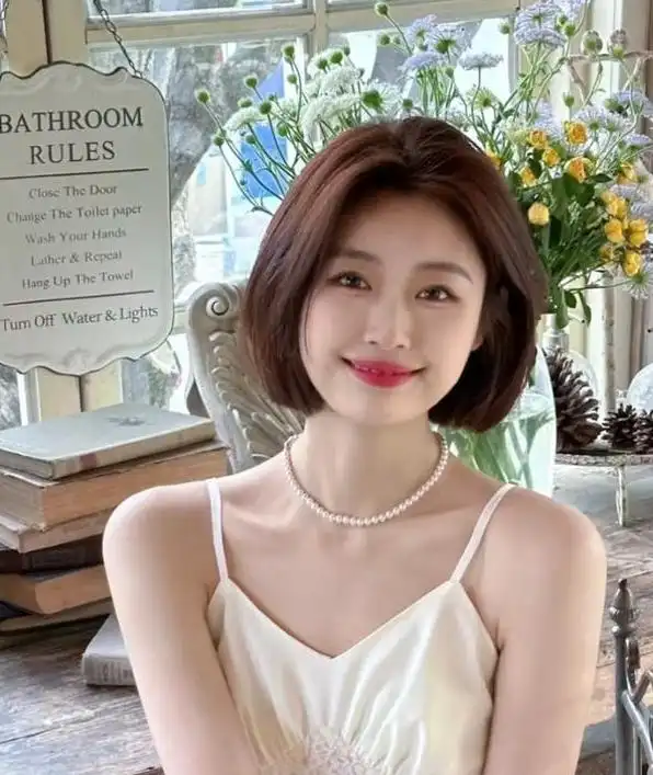 垂在耳后的短发是适合40岁以上女性的时尚发型.