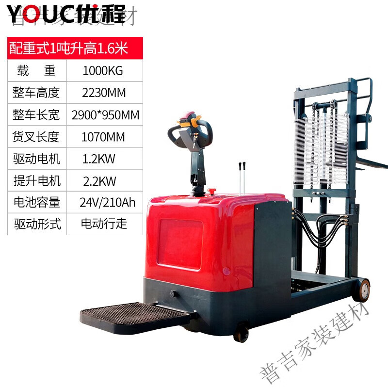 奇立彩吨吨吨无腿配重全电动堆高车 平衡式电瓶叉车 液压升高装卸 (载