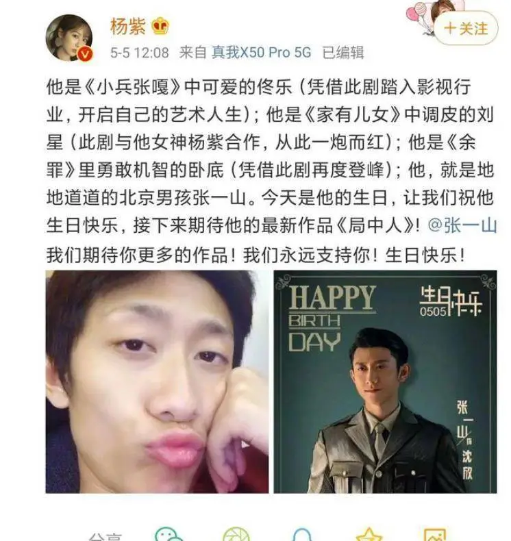 杨紫张一山# 张一山生日这天,"姐姐"小雪发文为"弟弟"刘星庆生,写 ""