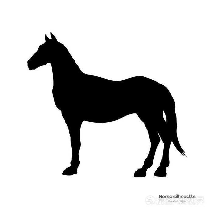 黑色的马剪影.在白色背景下的野马独立详细图纸.侧面视图