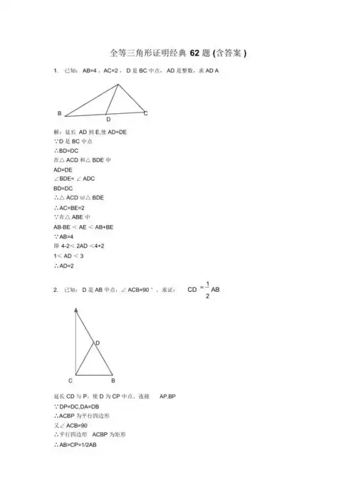 全等三角形,等腰三角形典型证明题62道(含答案)要点