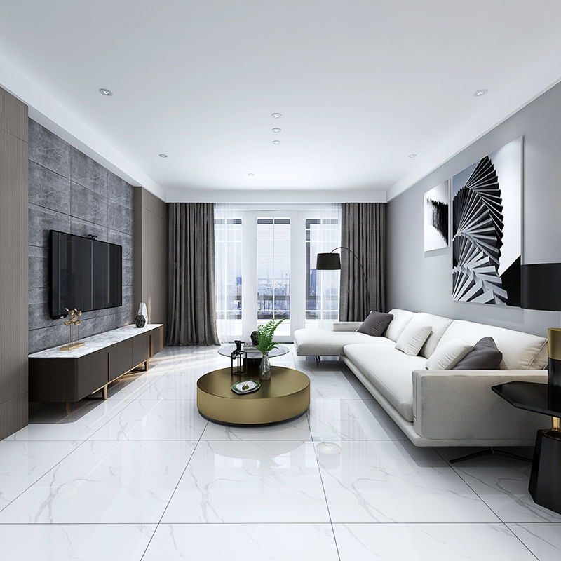 客厅瓷砖地砖白色通体大理石800x800大厅轻奢防滑耐磨地板砖佛山