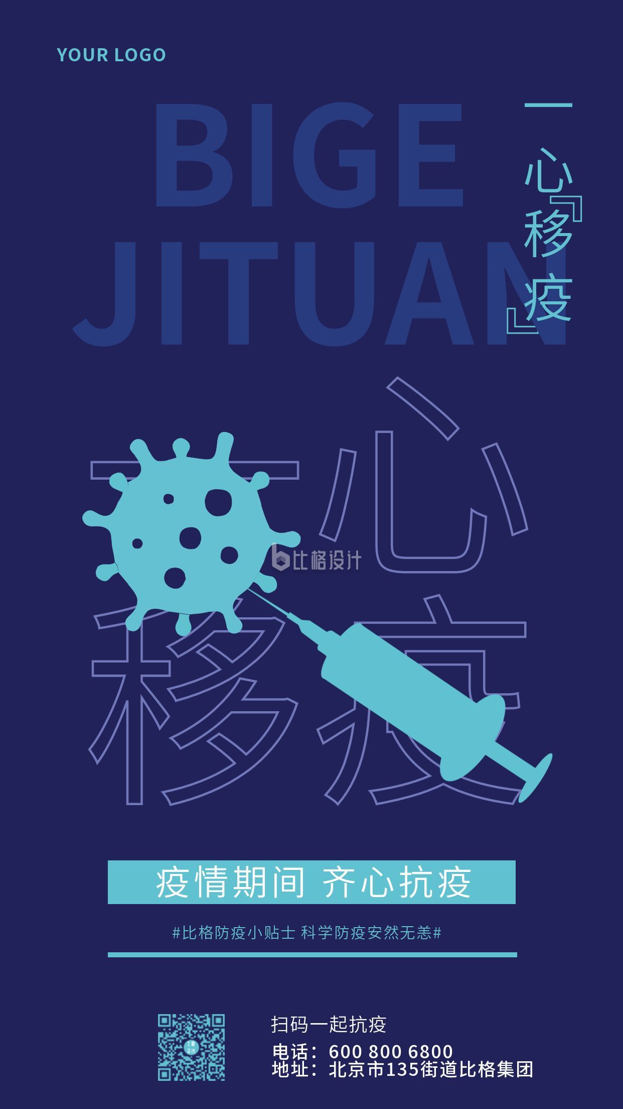 6097,主要用于手机海报方面,结合了蓝色,简约,创意,宣传,疫情,防疫等