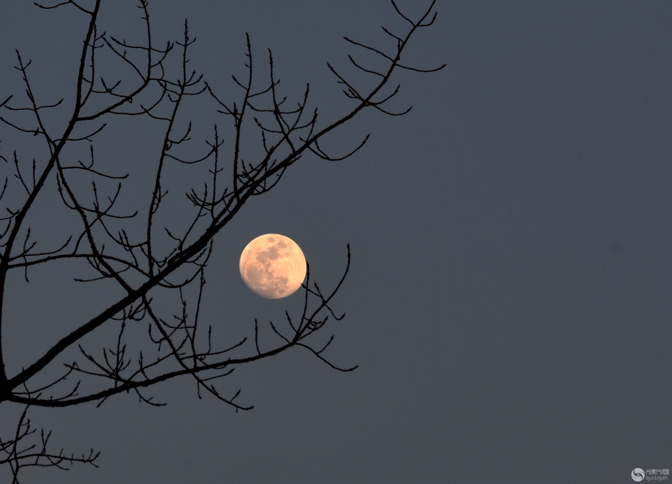 月亮调皮了 挂在树枝上