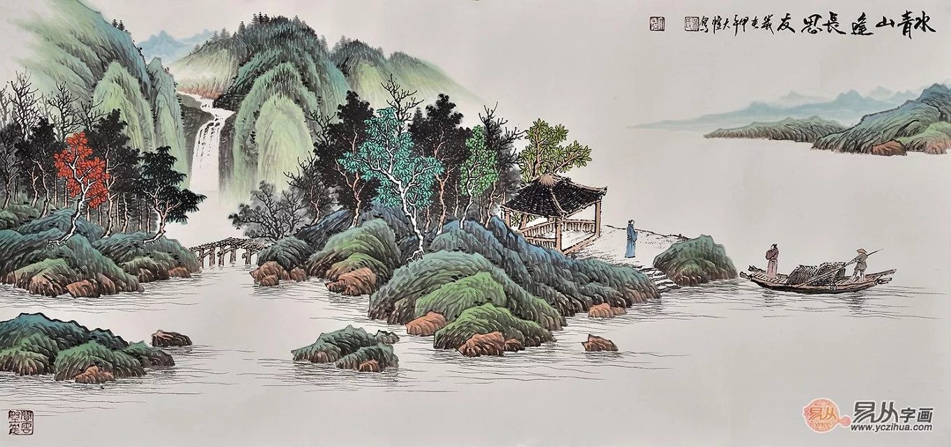 青绿国画 吴大恺最新力作山水画《青山空霁含烟雨》尺寸:68*136cm