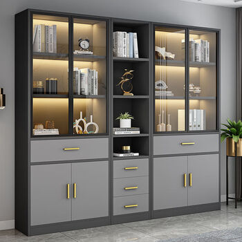 玻璃门书柜轻奢展示柜靠墙储物柜客厅现代简约收纳置物柜家用柜子