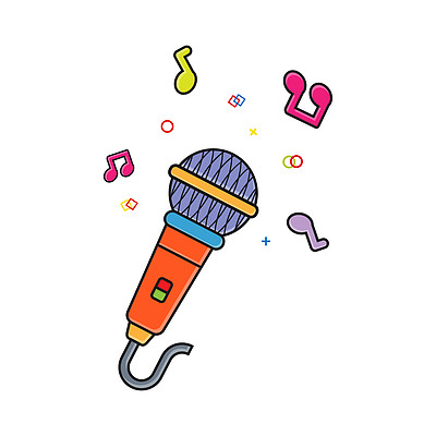 拿麦克风卡通唱歌快乐地一边拿着麦克风照片