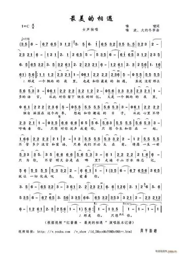 最美的相遇(嗨波词 嗨波,大约冬季曲) 红蔷薇 歌谱简谱网