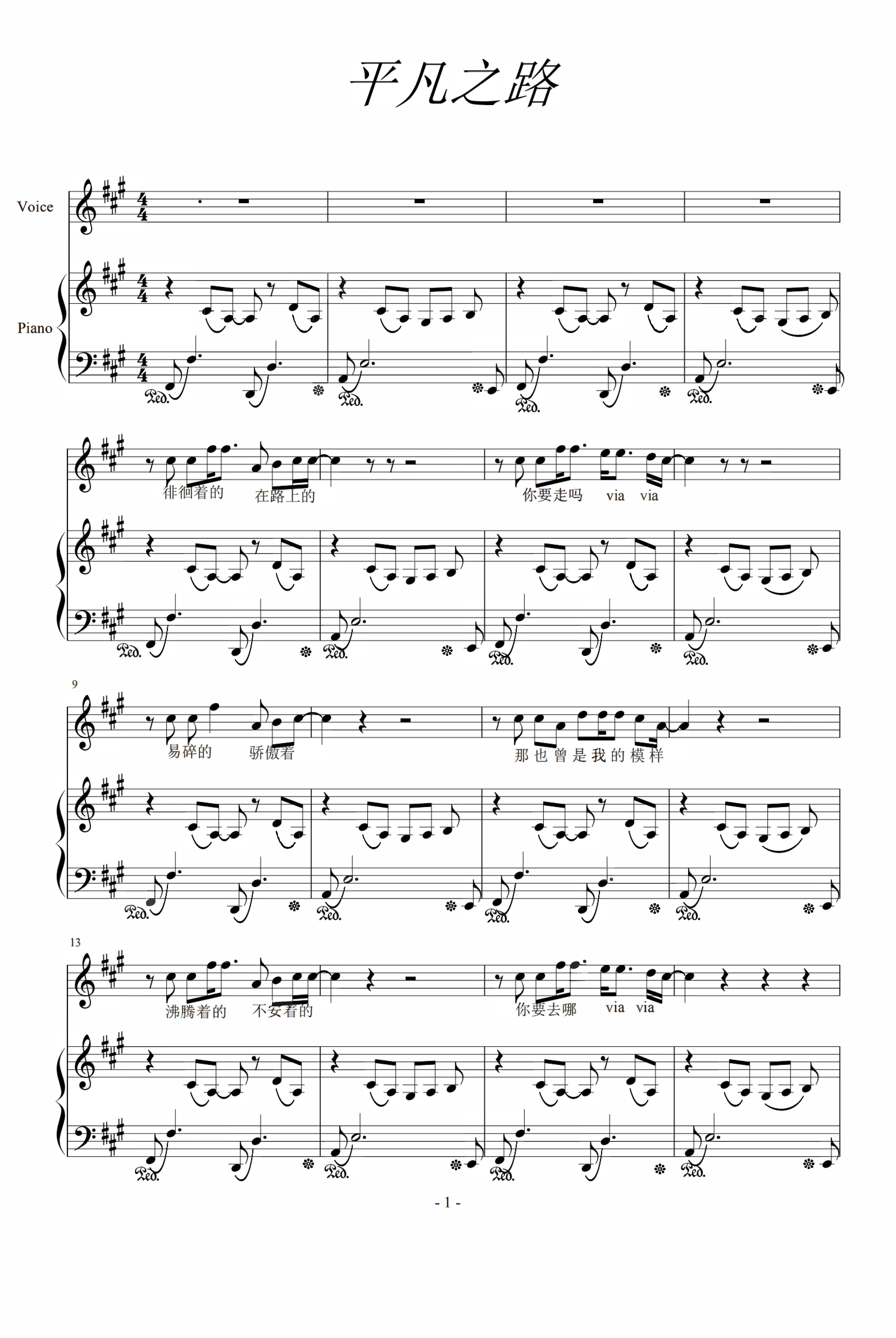 钢琴谱:平凡之路