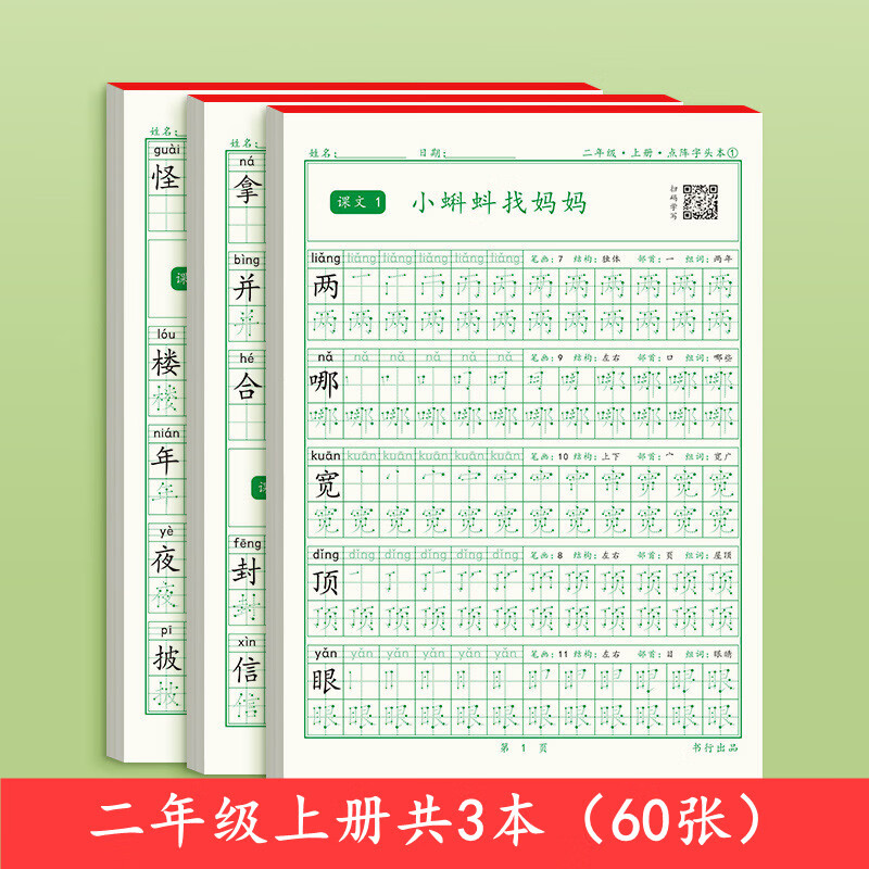 硬笔书法临摹练习生字组词字帖 2年级上册共60页【送4铅笔2握笔器】