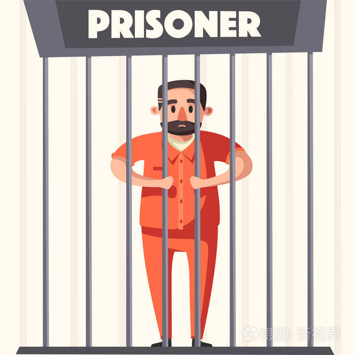 在监狱里的囚犯人性格.矢量平面卡通插画照片