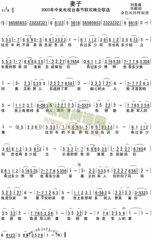妻子(2003年央视春晚歌曲) 歌谱简谱网