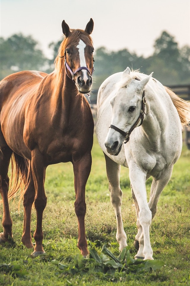 壁纸 两匹马,白色和棕色 1920x1440 hd 高清壁纸, 图片, 照片