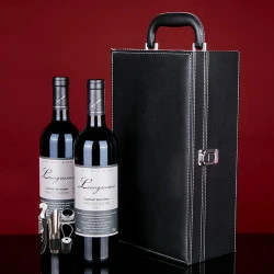 新款红酒盒礼品包装盒红酒盒子双支红酒礼盒2支装红酒盒带红酒杯