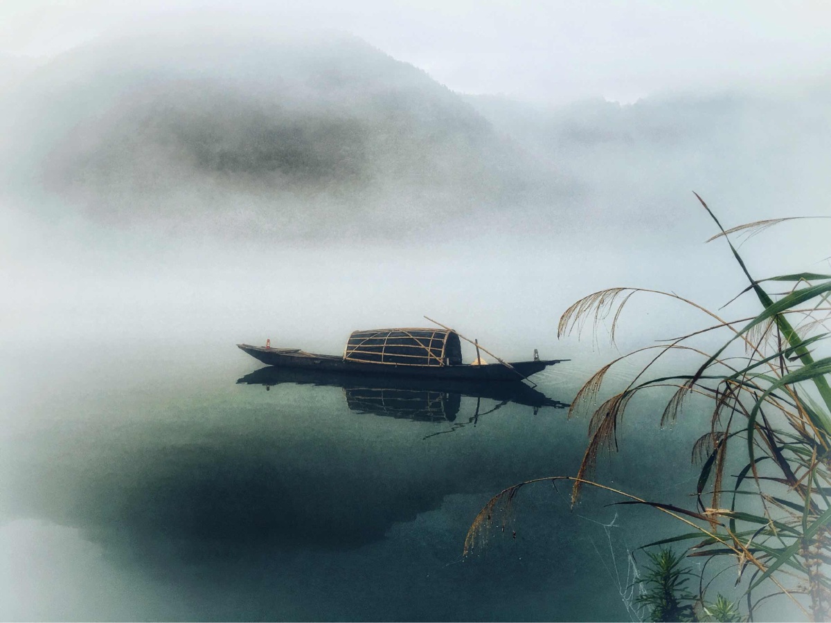 桔子格调 莲舟仙渡 中式日式原木人物禅意风景挂画客厅卧室装饰画