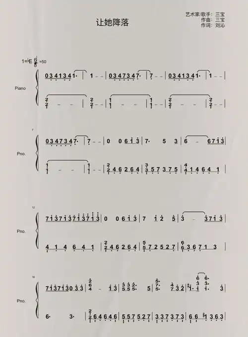 钢琴谱让她降落