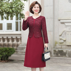 婚礼妈妈礼服两件套高贵春秋新款中老年外套喜婆婆婚宴装连衣裙女