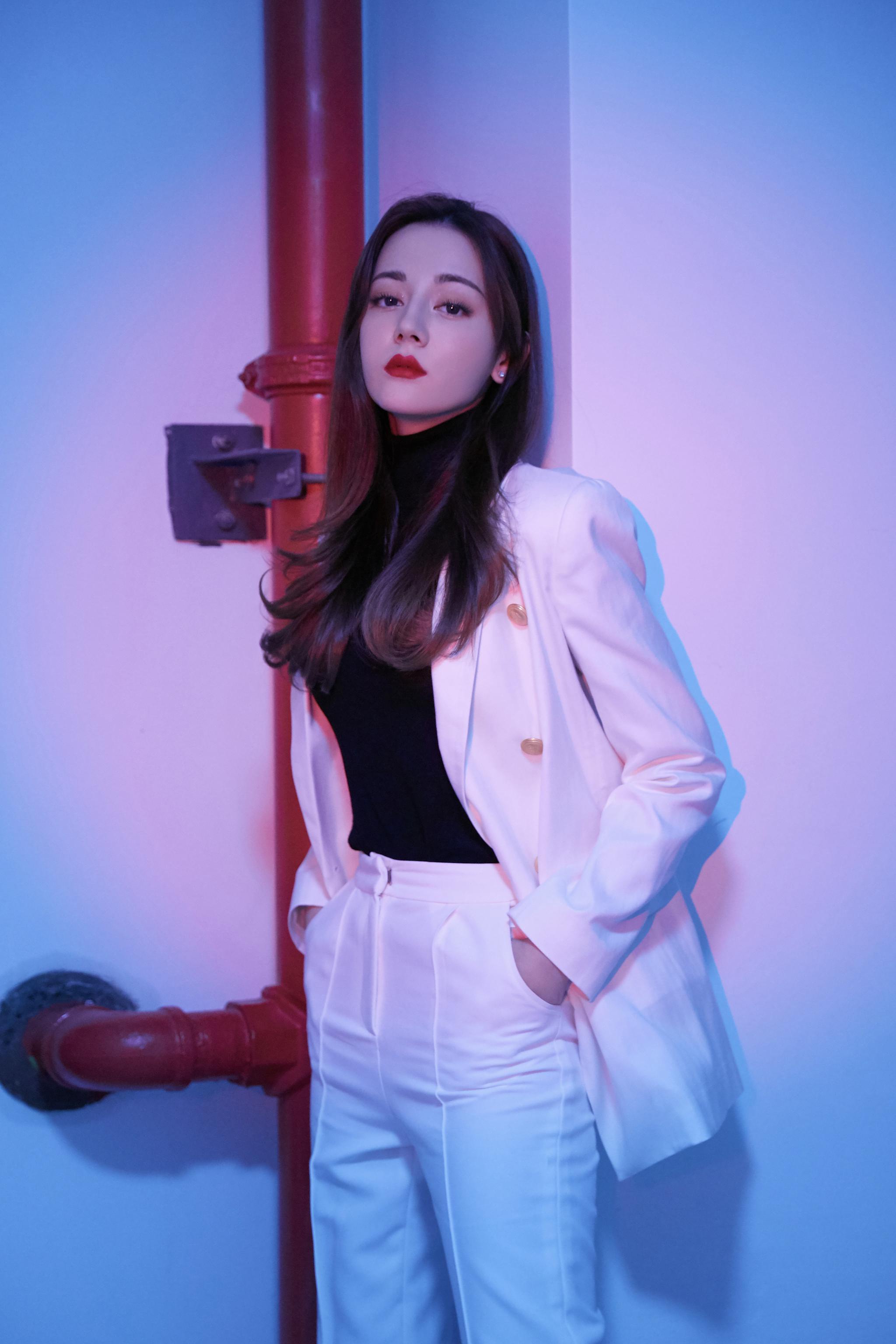 "满配版"热巴上线,黑白禁欲风西装配性感红唇,热巴这次太撩了
