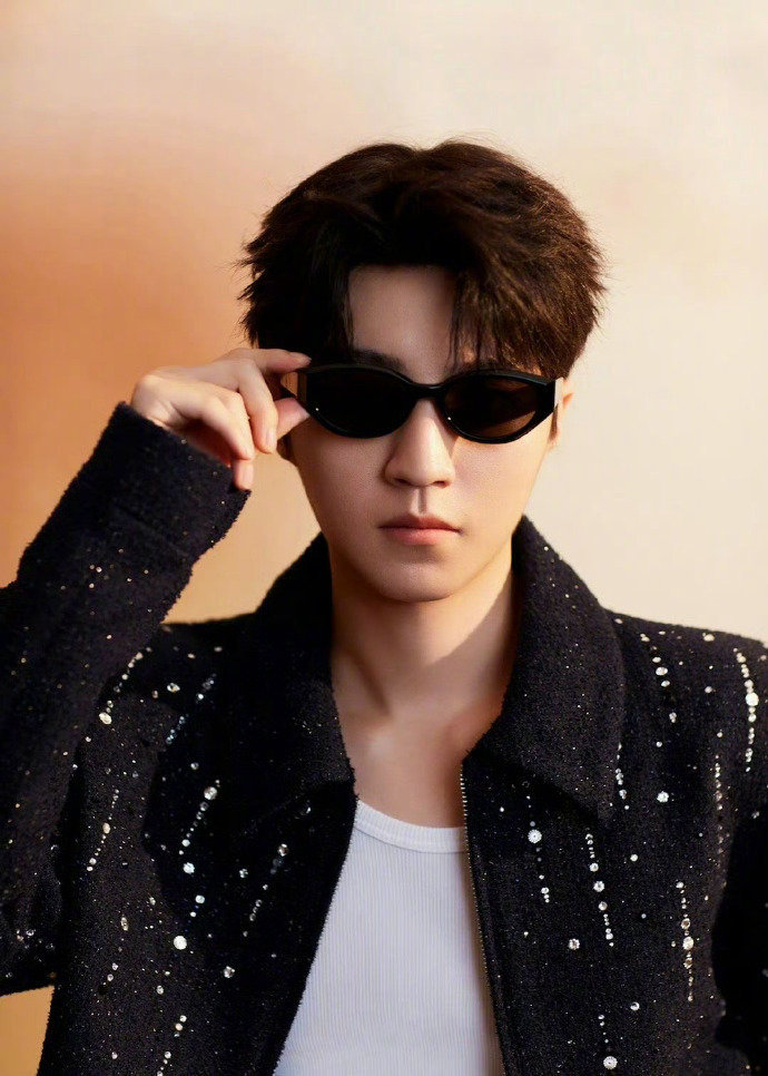 王俊凯 黑色亮钻套装 墨镜 摩登时尚帅气十足