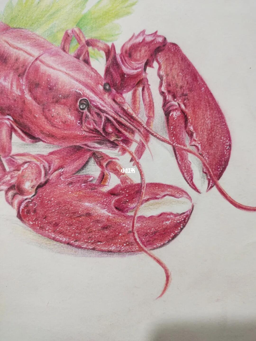 画小了好多细节没办法细画了彩铅龙虾