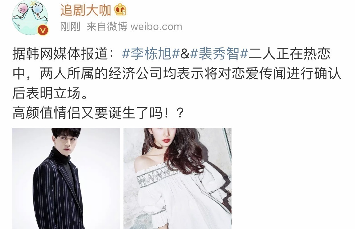 "阴间使者"李栋旭和裴秀智在一起了!双方承认恋情