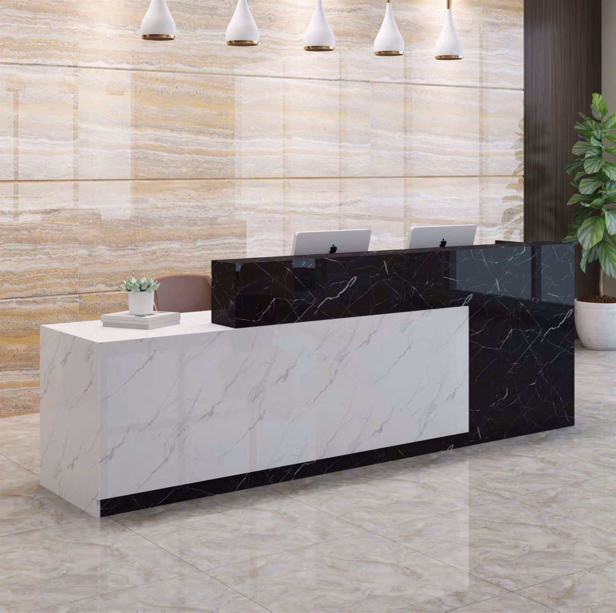 公司前台接待台简约现代仿大理石纹烤漆收银台不锈钢大厅吧台定制