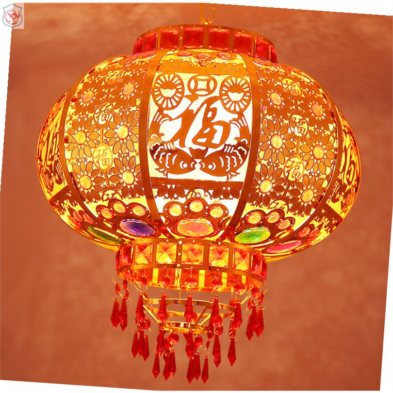 高档大红灯笼新年春节户外装饰阳台结婚庆喜字电动水晶旋转灯笼灯